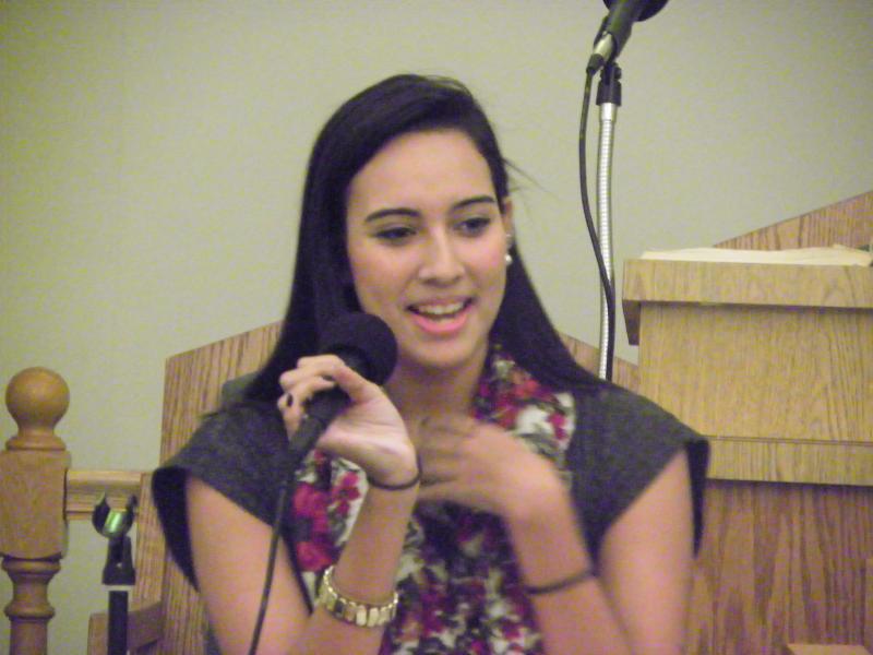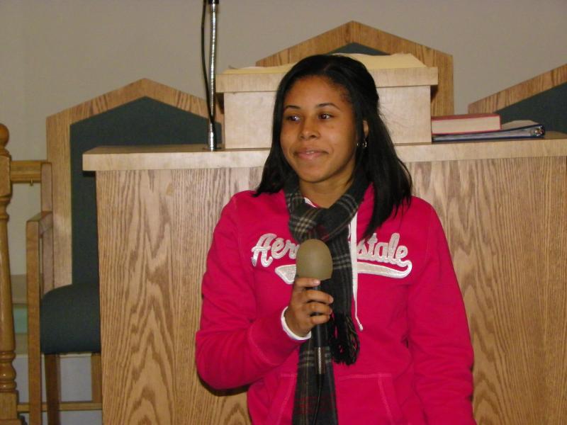 Tiffany Cartagena." Giving her testimony at youth group The Christian Church of Bayonne. Hearing from youth in our community. Reaching out to youth in our community.