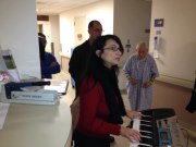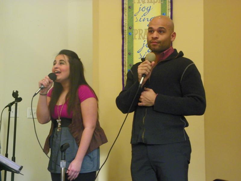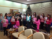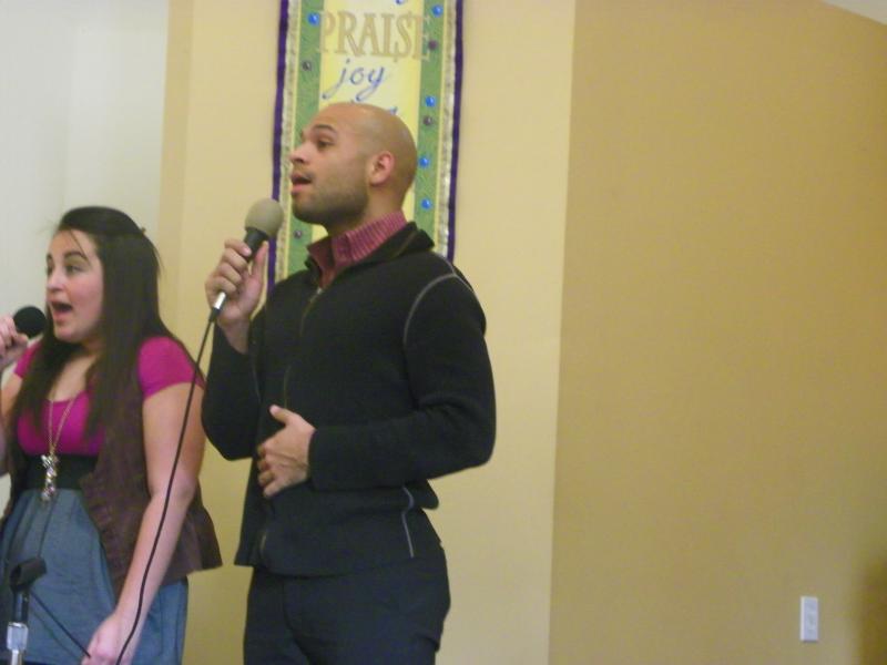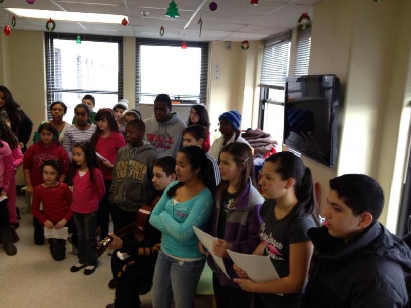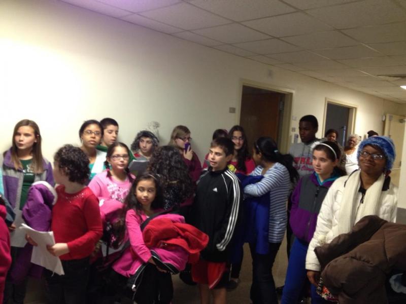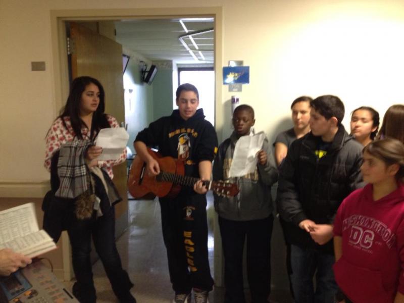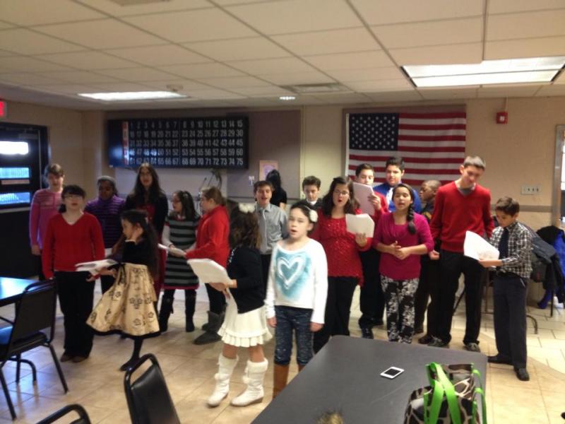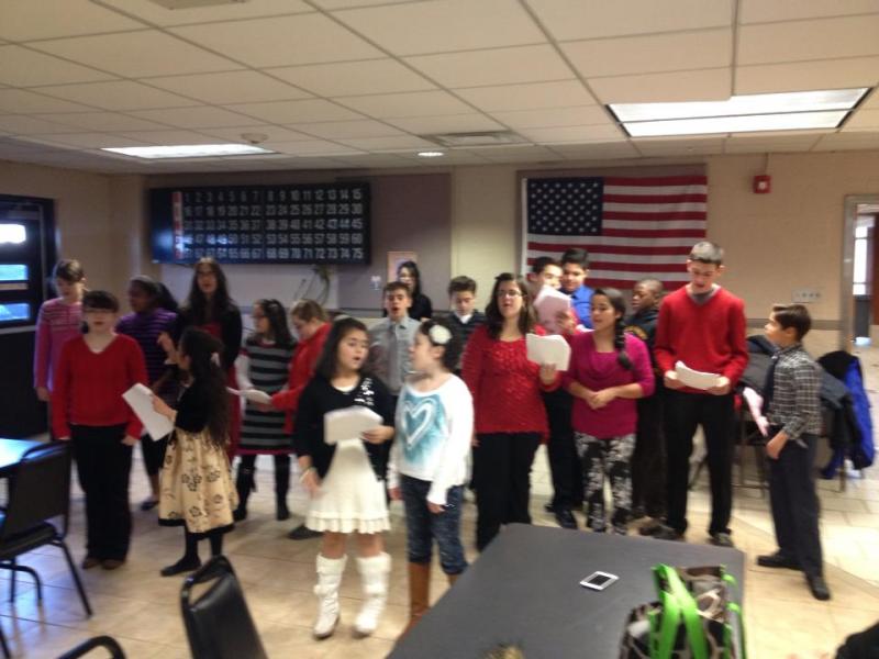 The Christian Church of Bayonne youth singing at the senior citizen building. They also gave out goodie bags