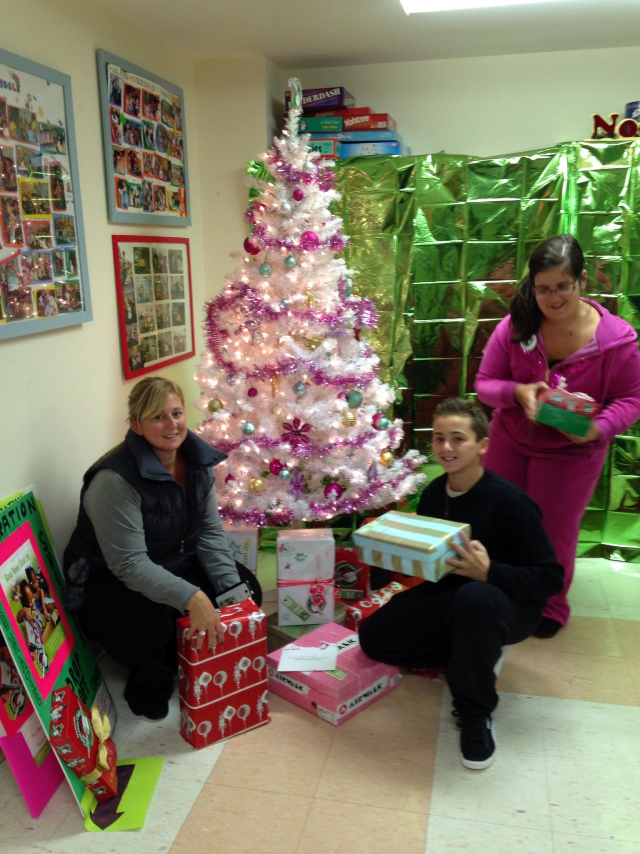 Volunteers at the Operation Christmas Child collection station. Youth are assisting with packages that will be shipped to North Carolina where a bible will be placed in each shoebox before they are sent to over 130 countries.